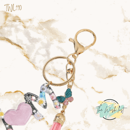 1Pce MOM acrylic Print Butterfly Tassel Keychain