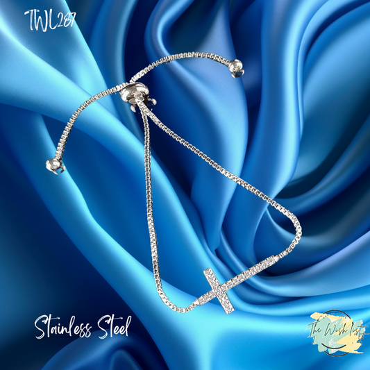 Cross Pendant Bracelet With Rhinestone For Women - Stainless Steel