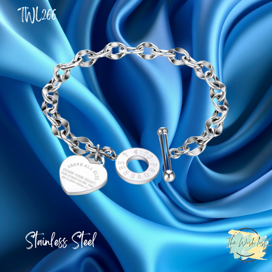 Classic Heart Engraved Toggle Clasp Chain Bracelet -Titanium Steel