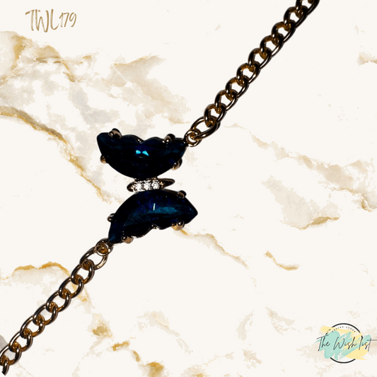 2 Pce Rhinestone Blue Butterfly bracelet set