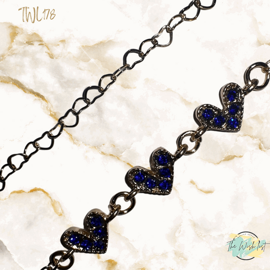 Delicate Heart shape bracelet with blue rhinestones set -2Pce