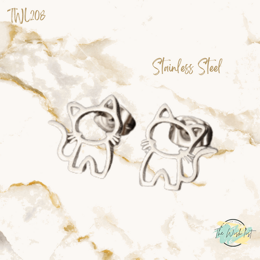 Cat Stainless Steel Stud earrings , Small Stud earrings- Gold & Silver