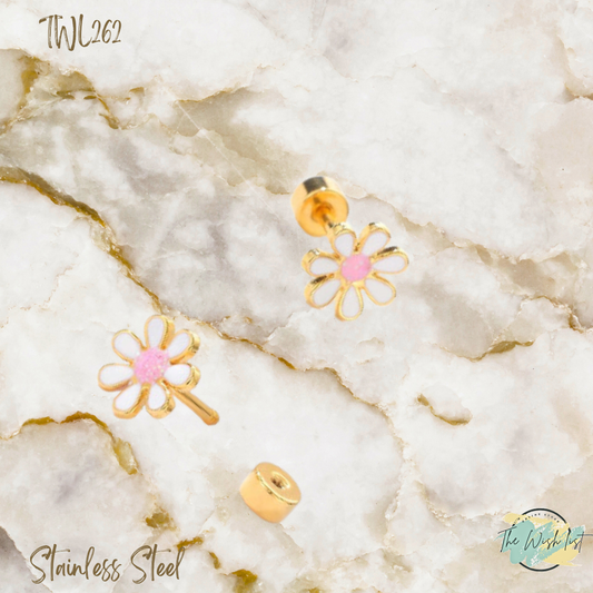 Flower Stainless Steel Stud earrings- Black, Rose gold, Gold, Silver