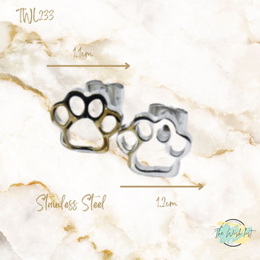 Paw design Stainless steel stud earrings - Gold, Silver, Black