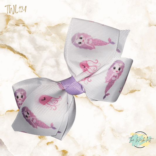 Girl's assorted Ribbon Print Medium Bow Decor Hair Clip.