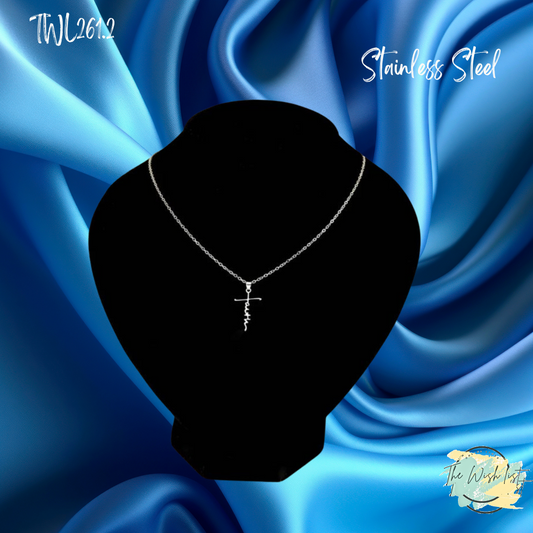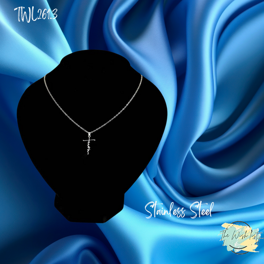 Faith Lettering Cross Necklace Pendants - Religious Stainless Steel