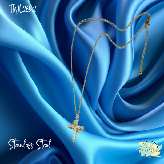 Cross Necklace with Crown, Dainty Paved Rotated Cross Pendant Necklace Rotating- Gold & Silver